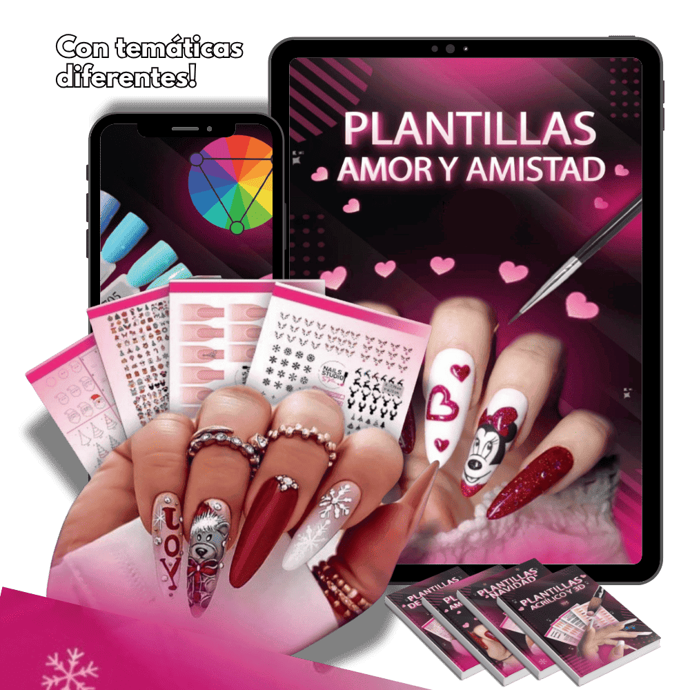 Nuestro kit incluye más de 200 plantillas y 1300 ejercicios prácticos para que puedas mejorar tus habilidades y ofrecer servicios de alta calidad a tus clientes o realizarte las uñas tu misma.